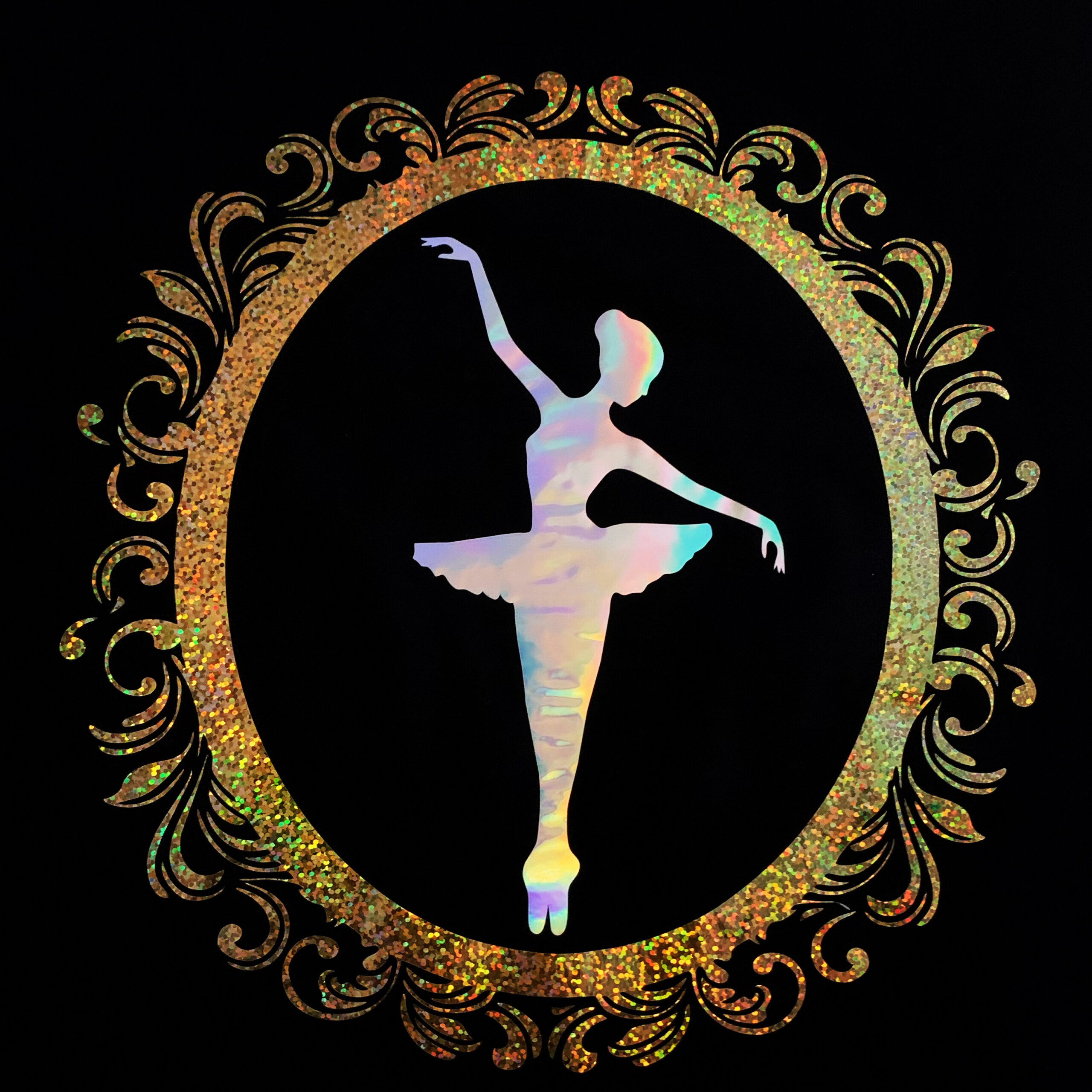 Sparkling Gold frame with a Holographic ballet dancer inside.