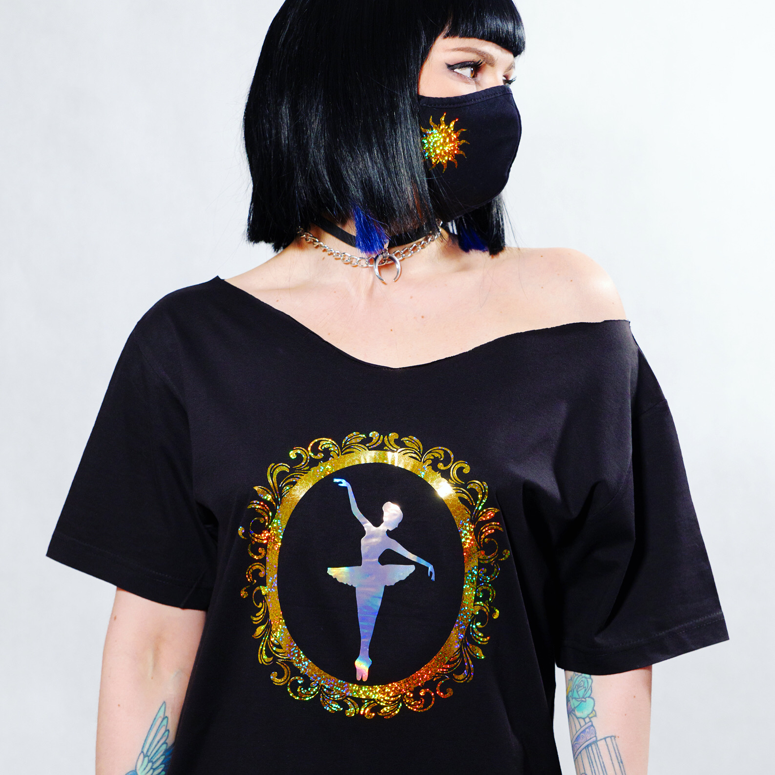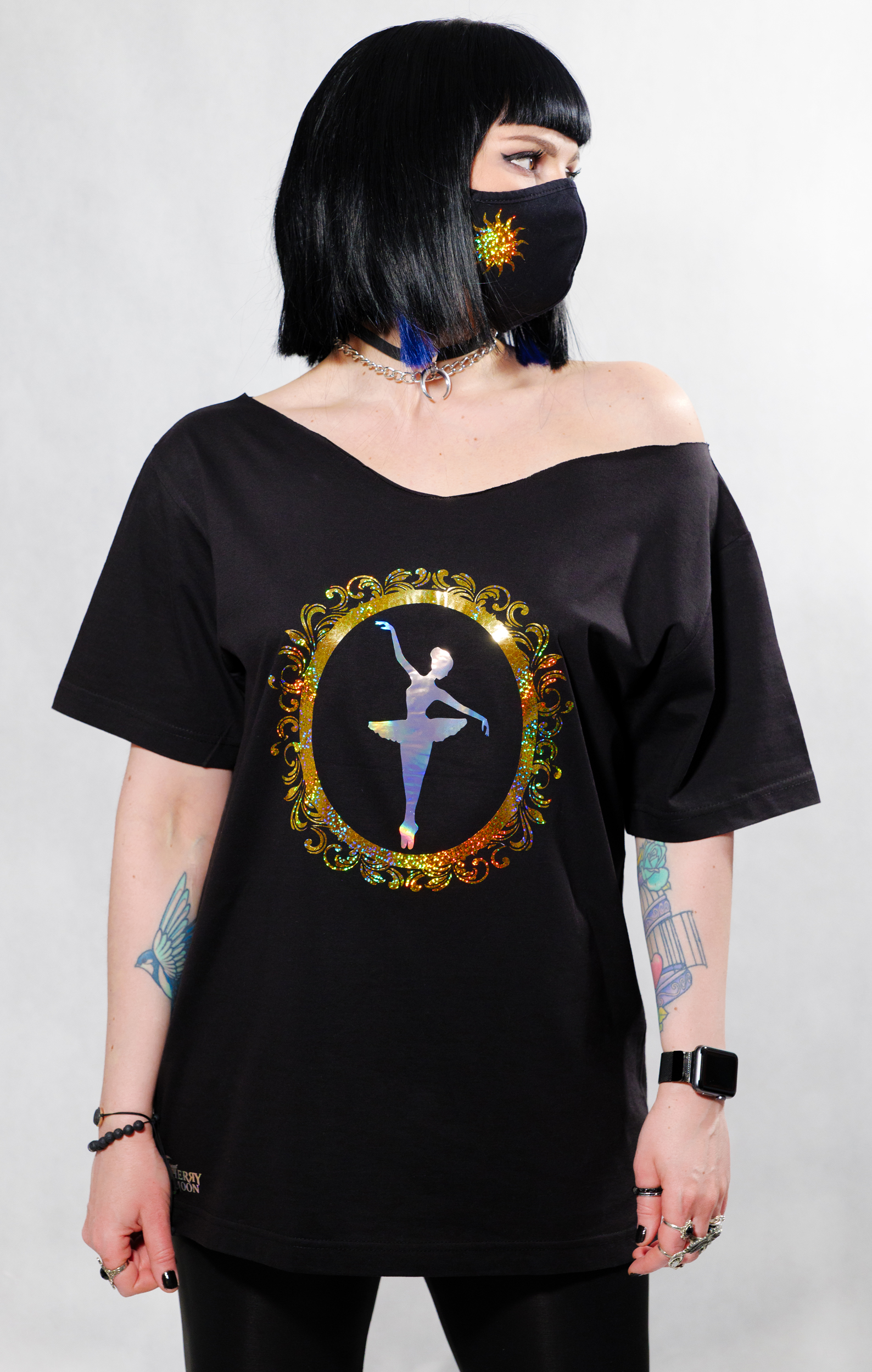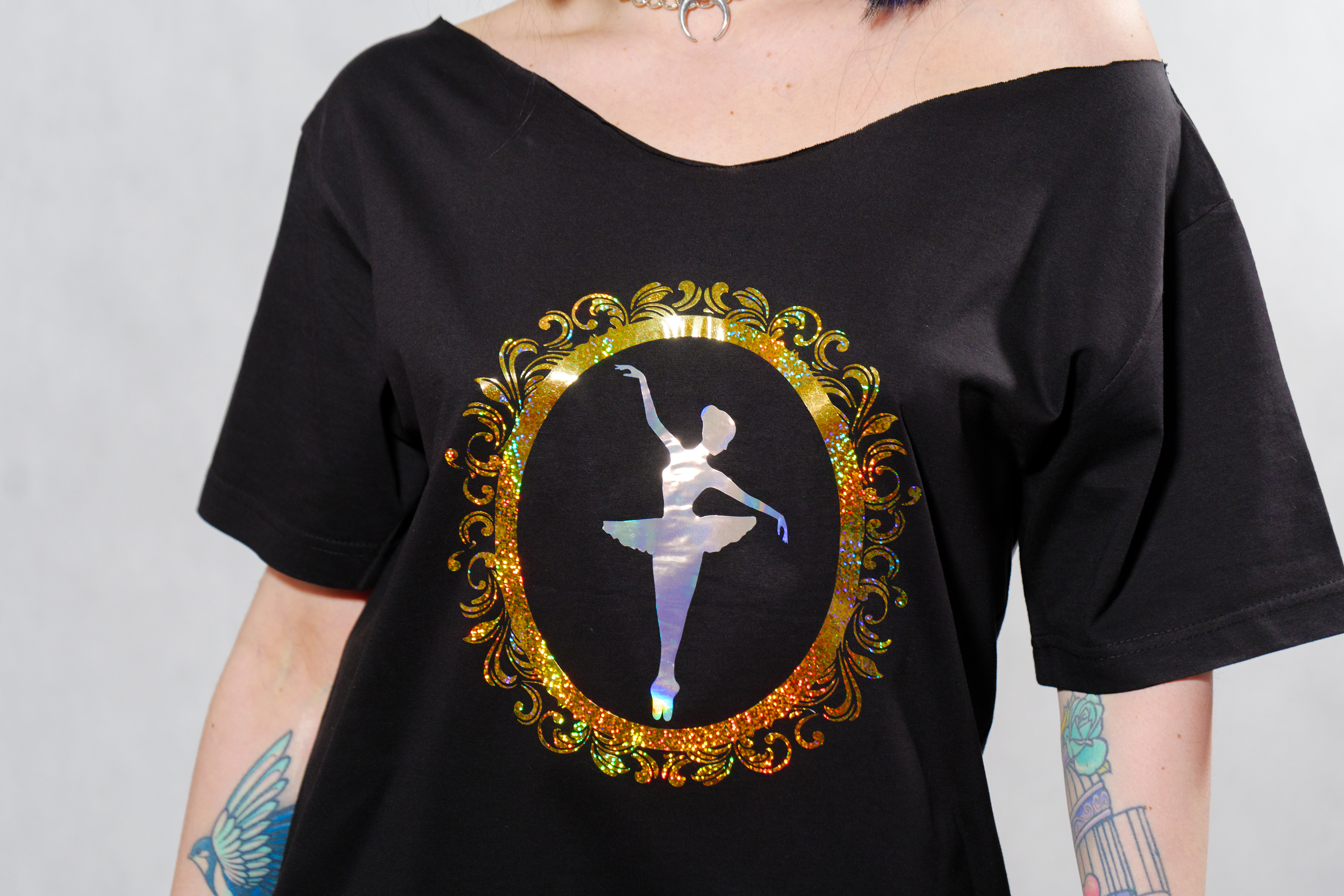 Off shoulder t shirt.